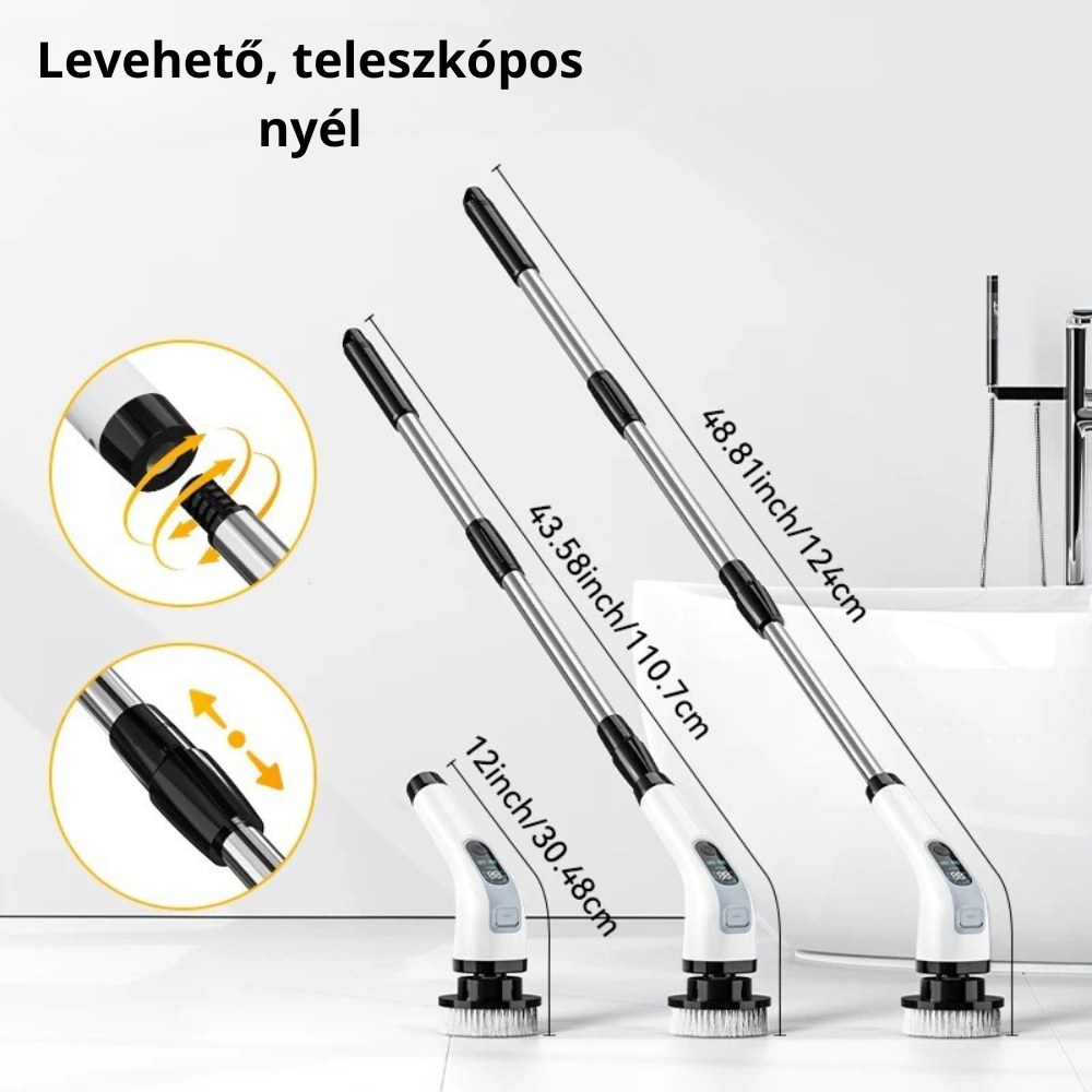 Ráadásul a cserélhető kefefejeknek köszönhetően különféle felületeken használhatod – a durvább súrolástól a finomabb takarításig mindenre van egy megoldás.